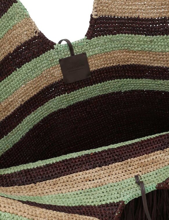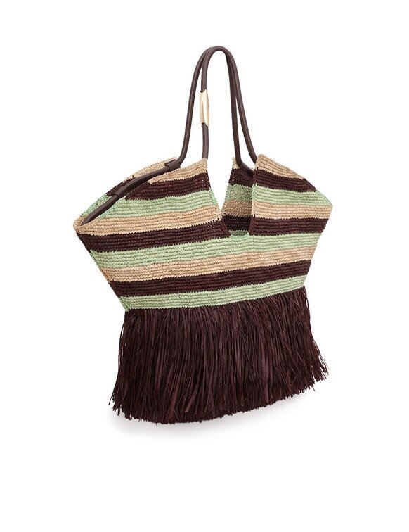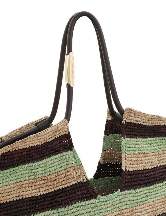 Hauptmaterial: RaffiaHergestellt aus handgewebtem Raffia in Madagaskar; natürliche Ausfransungen und Abweichungen sind Teil des Charakters. Flecken mit einem feuchten Tuch entfernen; chemische Reinigungsmittel vermeiden, um Verfärbungen zu verhindern. Mit der Zeit kann Raffia weicher werden, ausbleichen oder an Steifigkeit verlieren. Um Schäden zu vermeiden, von Feuchtigkeit, farbigen Stoffen und Accessoires fernhalten. In der Original-Staubtasche an einem trockenen Ort aufbewahren.Beachten Sie stets das Etikett oder die Pflegeanleitung für spezifische Pflegehinweise.