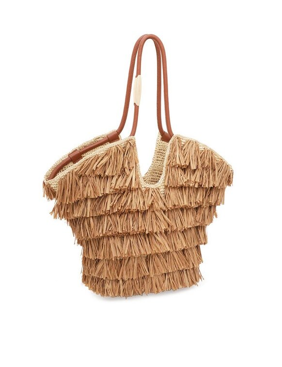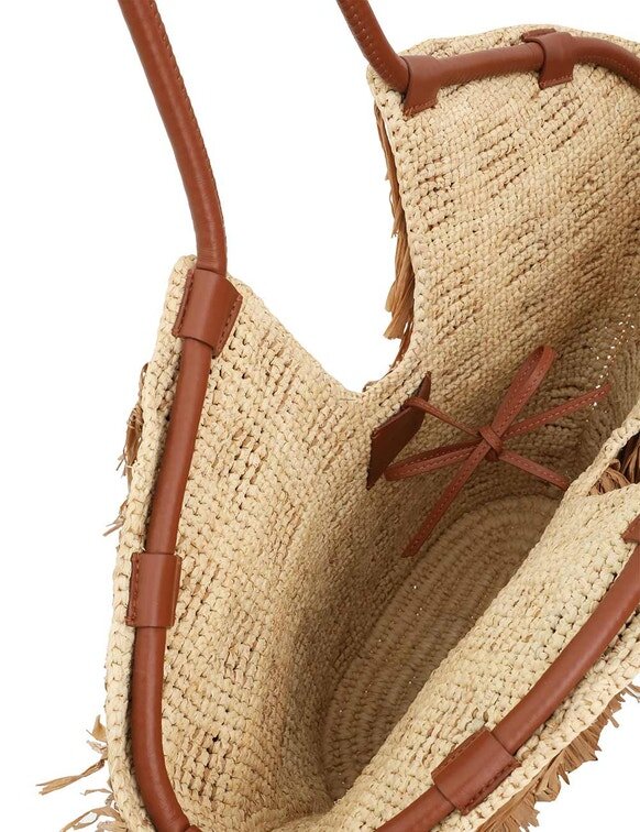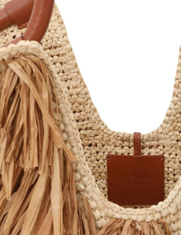 Hauptmaterial: RaffiaHergestellt aus handgewebtem Raffia in Madagaskar; natürliche Ausfransungen und Abweichungen sind Teil des Charakters. Flecken mit einem feuchten Tuch entfernen; chemische Reinigungsmittel vermeiden, um Verfärbungen zu verhindern. Mit der Zeit kann Raffia weicher werden, ausbleichen oder an Steifigkeit verlieren. Um Schäden zu vermeiden, von Feuchtigkeit, farbigen Stoffen und Accessoires fernhalten. In der Original-Staubtasche an einem trockenen Ort aufbewahren.Beachten Sie stets das Etikett oder die Pflegeanleitung für spezifische Pflegehinweise.