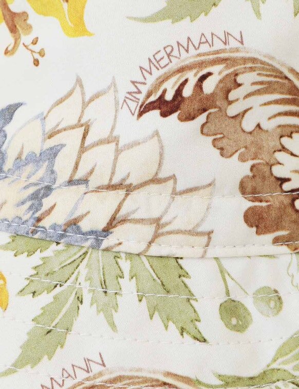Der Kinder-Bucket-Hat in Stamp Floral Cream aus unserer Resort Bademode 2026-Kollektion. Ein Baumwoll-Bucket-Hat mit schlaffer Krempe und wendbarem Design.